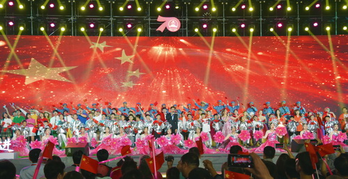 9月27日,beat365官网参加由市总工会、团市委、市妇联主办“我与祖国共奋进 歌声献礼新时代”音乐节,负责音乐节“时代之约”主题,共有100余学生参加演出活动,历经将近一个月彩排演练,学生们用歌声向祖国告白,为中华人民共和国成立七十周年喝彩。音乐节从9月23日开始,持续到29日,分“告白祖国、奋斗无悔、亮出底色、逐梦前行、时代之约、红领巾心向党、歌唱祖国”七个主题,每天晚8点在津湾广场亲水平台准时开唱。舞台上,耳熟能详的歌曲,《和谐中国》、《天耀中华》、《我和2035有个约》、《红旗飘飘》、《我们都是追梦人》……一首首歌饱含对祖国母亲的祝福,让聆听者心潮澎湃,热血沸腾,几乎每一首歌曲都是台上台下,共同合唱。最后,经典压轴曲目《没有共产党就没有新中国》台上台下的大合唱,将整场歌会推向高潮,给表演画上了圆满的句号。