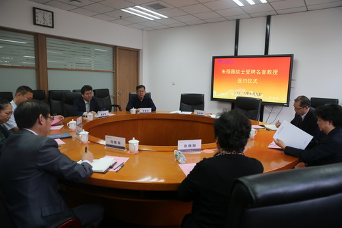 会上,葛宝臻代表学校与朱蓓薇签订聘用合同,并向她颁发聘任证书。
