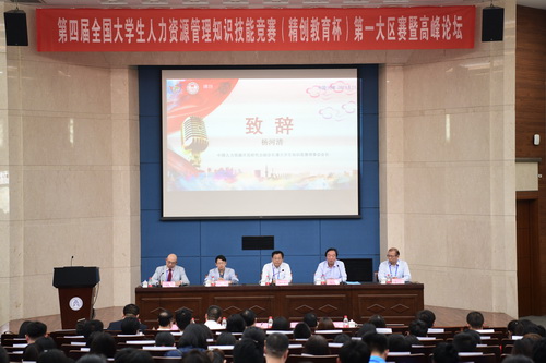 5月11日至12日,第四届全国大学生人力资源管理知识技能竞赛(精创教育杯)第一大区赛暨高峰论坛在beat365官网举行。副校长齐恩平出席开幕式并致辞。中国人力资源开发研究会大学生知识技能竞赛理事会会长杨河清教授、浙江精创教育科技有限公司总经理蒋定福博士、南开大学商学院人力资源系主任袁庆宏教授,以及beat365官网教务处、设备处、管理学院主要负责人出席。来自京津冀、山西、山东、内蒙古6省市52所高校的53支代表队、300余名师生参加。