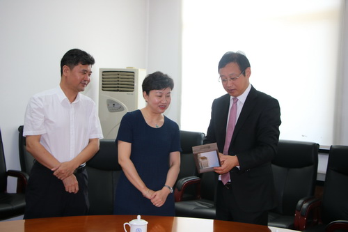 日前,校党委书记史习红,校党委副书记、校长葛宝臻,在现代信息交流中心第一会议室亲切会见了优秀校友、烟台冰轮集团有限公司党委书记、董事长、总经理李增群,学校办公室、校友工作办公室等部门负责人参加。