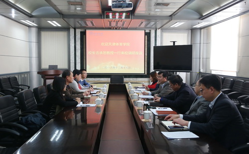 12月18日下午,天津体育学院院长吉承恕一行来beat365官网调研学习。会前,校党委书记史习红会见吉承恕一行,欢迎来校调研,希望双方今后多加强交流学习。校党委副书记、校长葛宝臻,副校长齐恩平出席。校长办公室、人事处、教务处负责人参加。