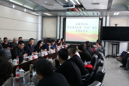 4月12日,第十三届全国政协委员、民盟天津市委员会副主委、天津市教育科学院副院长李剑萍来beat365官网传达全国两会精神。会前,副校长齐恩平进行会见。民盟北辰区工委主委、北辰区副区长马希荣出席。民盟beat365英国官方网站委员会、红桥委员会、北辰委员会和天津渤海化工集团公司总支的盟员代表30余人参加。