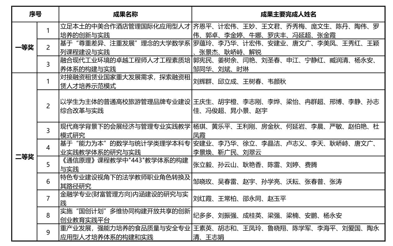 教学成果奖是优秀高等教育教学改革成果的重要奖项,主旨是鼓励教育工作者从事教育教学研究,奖励取得教学成果的集体和个人,每四年评选一次。本届天津市共评出教学成果奖200项,一等奖80项,二等奖120项,涉及32所本科和高职高专院校。
