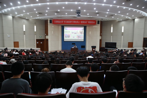 为深入学习宣传贯彻习近平总书记在北京大学师生座谈会和纪念马克思诞辰200周年大会上的重要讲话精神,按照教育部和天津市教育两委《关于组织开展“学习新思想 千万师生同上一堂课活动”的通知》要求,6月14日下午,学校在图书馆三楼国际报告厅举行“学习新思想 千万师生同上一堂课”专题报告会。党委宣传部、学工部主要负责人、马克思主义学院全体师生、辅导员代表与各学院300余名学生党员、学生骨干代表共同聆听报告会。