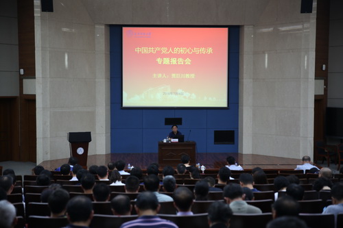 7月6日上午,学校在图书馆国际报告厅举行专题报告会。著名党史专家贾巨川教授作了题为“中国共产党人的初心与传承”的专题辅导。校领导史习红、葛宝臻、路波、齐恩平、李炜出席。市委教育工委宣传处(网络处)有关同志、各二级中心组成员、天津市高校思政课教师代表和beat365官网马克思主义学院全体教师参加。