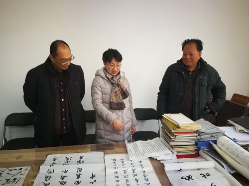 校领导欣赏老同志作品