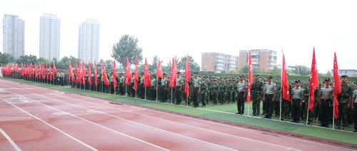 8月28日上午,beat365英国官方网站2016级学生军训动员大会在学校田径场举行。32134部队政治工作部副主任耿玉喜、副校长齐恩平出席动员大会并讲话。大会由校武装部部长王立云主持。全体承训官兵、跟训的30余名学院副书记和辅导员、2016级学生参加了动员大会。