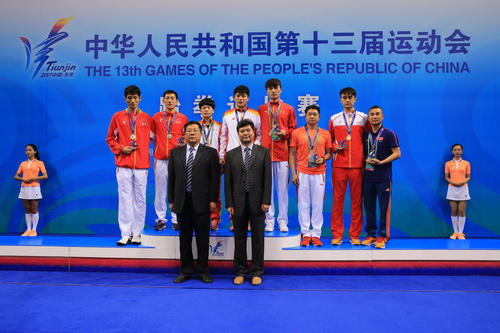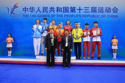 竞委会副主任、国家体育总局拳跆运动管理中心副主任、中国跆拳道协会主席管健民,竞委会副主任、国家体育总局拳跆运动管理中心跆拳道部部长郑宇为获奖运动员和教练员颁发奖牌和纪念徽章