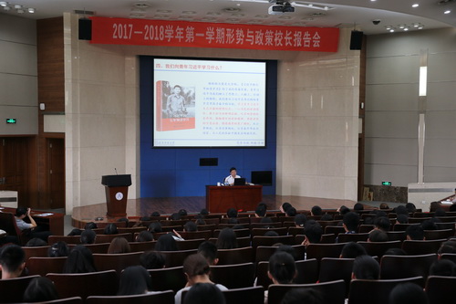 宣传部、学工部、团委负责人,各学院分管学生工作副书记、辅导员,2017级学生代表300余人参加报告会。