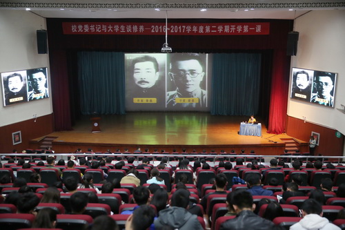 3月15日下午,校党委书记史习红以“修养”为主题在科学会堂讲授2016-2017学年第二学期开学第一课。宣传部、学工部、团委、党委办公室、老干部工作部负责人,各学院分管学生工作副书记、辅导员、马克思主义学院部分教师及学生骨干近千人到场聆听。