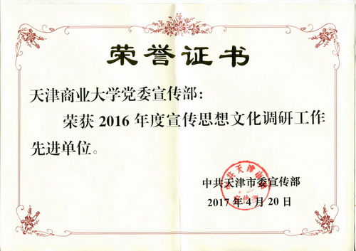 宣传部荣获天津市2016年度宣传思想文化调研工作先进单位