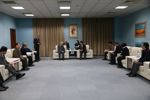 11 月13 日,葛宝臻校长在图书馆二楼贵宾室会见了日本茶道里千家千玄室大宗匠先生一行,双方就如何以新的合作模式、在更广泛的领域进行合作等事宜进行了友好商谈,并达成共识。