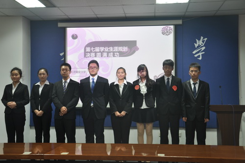 为了引导低年级同学合理安排大学时光,对大学学习方案进行合理的规划,校团委主办、科技协会承办了第七届学业生涯规划大赛。各学院团委对学业规划高度重视,组织了学院级别的比赛,并推选优秀规划方案参加校级评审。从预选赛中脱颖而出的 8 名 2014 级同学在校团委新浪微博平台“今日天商”上进行了展示,并于 11 月 26 日下午 参加了校级决赛。研究生部副主任赵建洪、生物技术与食品科学学院党委副书记孙文利、艺术学院党总支副书记梁强担任评委,对选手们的规划书进行点评