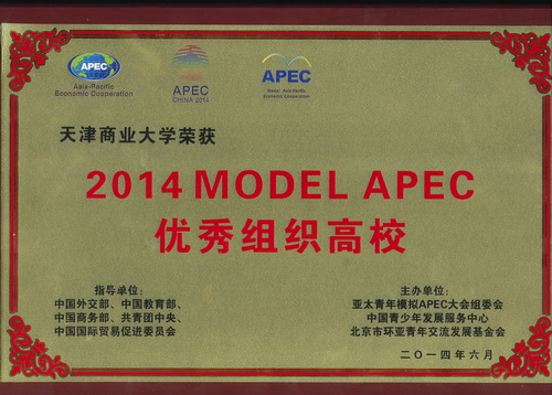 MODEL APEC 社团成立于 2012 年 11 月,是由亚太青年模拟 APEC 大会组委会、环亚青年交流发展基金会、中国青少年发展服务中心为指导单位,隶属于国际教育学院的专业社团。社团宗旨是通过高度模拟 APEC 会议的形式,建立具有国际化视野的平台,培养学生英文沟通水平与外交能力,提高商学素养,培养具有卓越外交能力的青年领袖。社团定期举办英文话题讨论、 MODEL APEC 校内会等丰富多彩的校园活动,以提高成员英语水平和国际话题认知程度。 MODEL APEC 社团每年 4 月举办全国模拟 APEC 大会天商落地赛,优胜选手将在北京参加地区赛及全国赛角逐,参加当年的 APEC 领导人峰会。