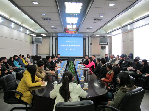 12 月 2 0 日上午, beat365英国官方网站润茂优秀毕业生奖学金( 2014 年度)表彰会在信息交流中心多功能会议室举行。校友总会副会长、校办公室主任庞文生, 天津市润茂交通器材有限公司副总经理、beat365英国官方网站天津校友会理事沙波,校友总会理事、理学院党委副书记梁泽军,校友总会秘书长许洪涛,天津润茂骑士文化有限公司员工代表阎雅君,理学院团委书记刘瑞娇以及理学院 30 余名学生代表参加了表彰会仪式。校友总会副会长、校友工作办公室主任张堃主持了表彰会。