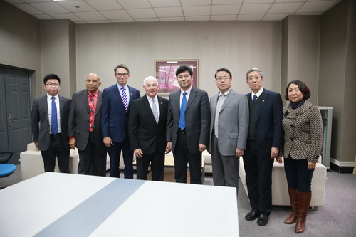 校长助理、总会计师李真,校办主任庞文生,国际交流处处长张金霞,基建处处长兼后勤管理处处长李彦文,TUC-FIU 合作学院党委书记罗庆丰、副院长王妙、党委副书记辛佳澎,计划财务处副处长陈梁,学工部副部长孟国栋,教务处副处长计宏伟陪同会见会谈。