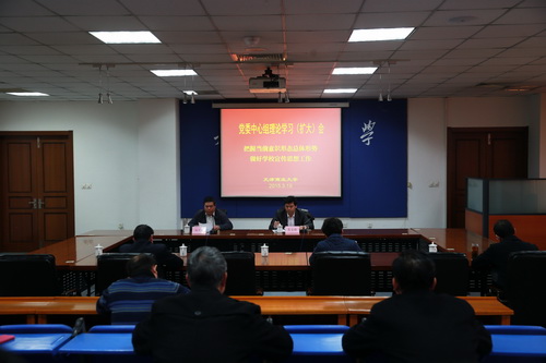 3 月 19 日 下午,校党委中心组理论学习(扩大)会在图书馆弘毅厅举行。这次学习会的主题是“把握当前意识形态总体形势,做好学校宣传思想工作”。校长葛宝臻出席并讲话。学习会由校党委副书记杨万义主持。校领导史习红、刘革生、路波出席。校党委委员,各分党委、党总支、直属党支部书记,二级中心组联组学习活动召集人共 40 余人参加。