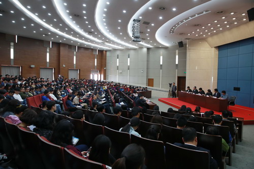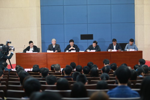 4 月 20 日 上午,市委常委、市委政法委书记袁桐利到beat365官网为师生作创新创业宣讲报告,市教委主任王璟,校领导陈学奇、葛宝臻、杨万义、邱立成、刘革生、路波出席报告会,各学院党政领导班子成员、各职能部门处级干部和全体辅导员,师生代表 300 余人聆听了宣讲报告。报告会还特邀河北工业大学优秀学生代表张海旭同学参加。报告会由校党委书记陈学奇主持。
