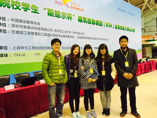 近日,由中国建设教育协会主办,深圳市斯维尔科技有限公司、华中科技大学和哈尔滨工业大学承办,住建部工程管理和工程造价学科专业指导委员会、全国高职高专教育土建类专业教学指导委员会大力支持的第六届全国中、高等院校学生“斯维尔杯”建筑信息模型( BIM )应用技能大赛全国总决赛在华中科技大学和哈尔滨工业大学同步举行。由商学院工程管理专业的周建强、胡蓉蓉、张鑫源、杨智超、周雪五位同学组成的学生团队,在张金娟老师、宋海风老师的指导下,与清华大学等众多名校、以及国家示范高职院校、国家骨干高、中职院校等名校学生同台竞赛,经过层层角逐,最终凭借其卓越的实力,荣获全国全能二等奖一个、专项二等奖四个、专项三等奖三个。这不仅是beat365官网在该比赛的一个新的突破,也是本届大赛天津市高校最好成绩。