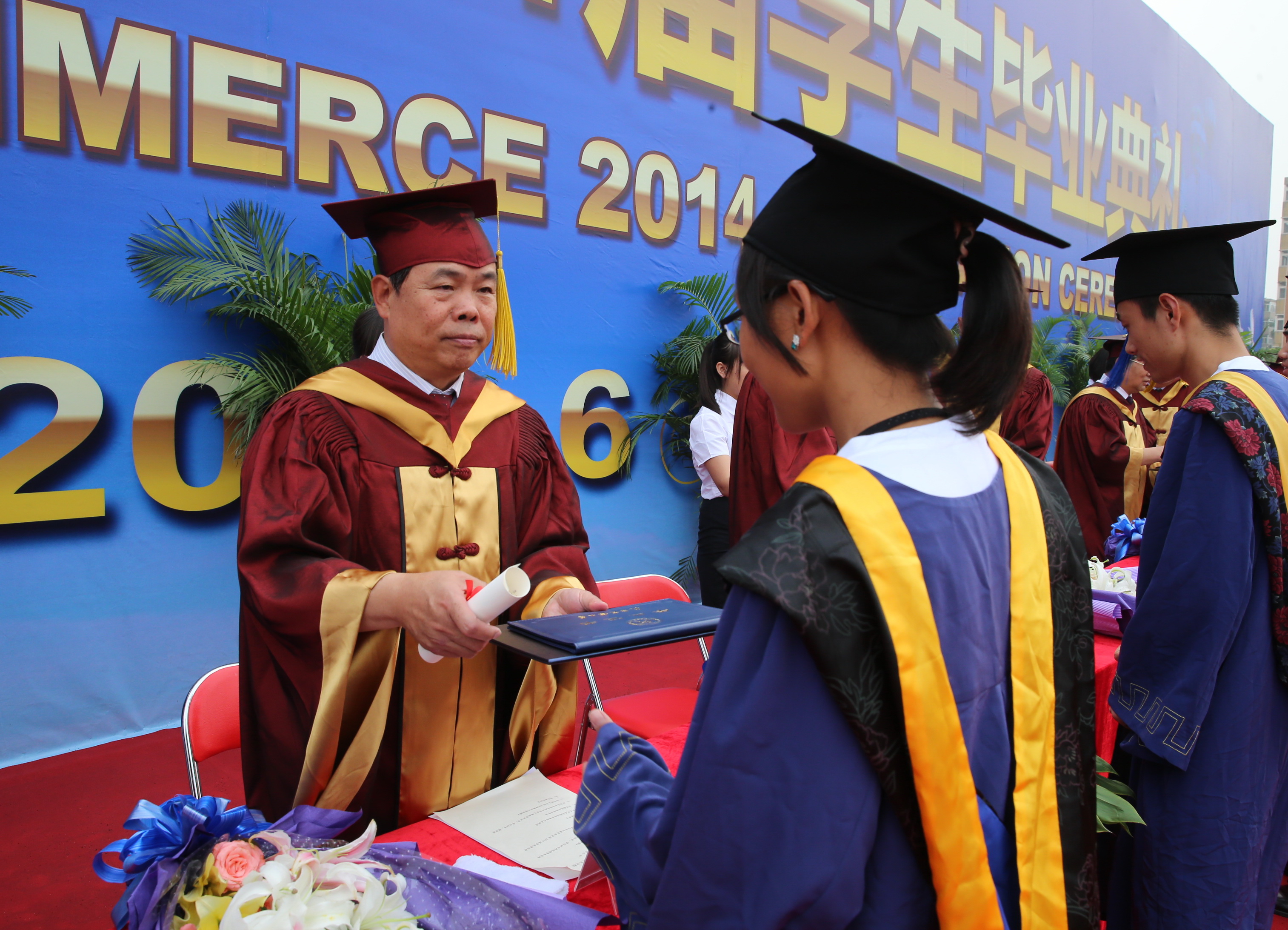 副校长刘革生为毕业生颁发毕业证书、学位证书