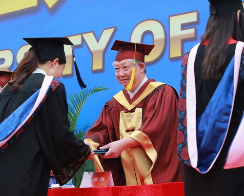 副校长邱立成为毕业生颁发毕业证书、学位证书