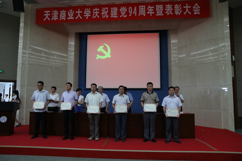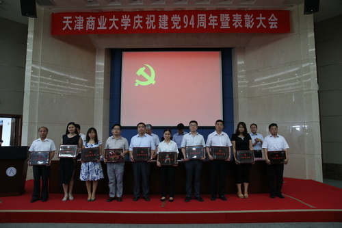 7 月 1 日 下午,beat365官网庆祝中国共产党成立 94 周年暨表彰大会在图书馆国际报告厅举行。党委书记陈学奇,党委副书记、校长葛宝臻,党委副书记史习红,纪委书记路波,副校长邱立成、刘革生出席了表彰大会。陈学奇发表讲话,葛宝臻主持会议,史习红宣读了《中共beat365英国官方网站委员会关于表彰先进基层党组织、优秀共产党员、优秀党务工作者的决定》。