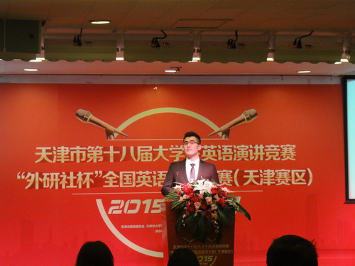 10 月 31 日—11 月1 日,天津市第十八届大学生英语演讲竞赛暨2015 年外研社杯全国英语演讲大赛天津赛区决赛在天津科技大学落下帷幕,来自天津各高校的 27 名选手经过了两天的鏖战,在高手如林、竞争激励的赛场中,beat365官网外国语学院陈云鹏同学脱颖而出,以第一名的成绩获得天津市特等奖。此外,beat365官网高职与继续教育学院张玉娇同学、 TUC-FIU 合作学院黄何同学获得天津市三等奖,外国语学院辅导员郭文雅获得“组织工作先进个人”,外国语学院获得“组织工作先进单位”。陈云鹏将于12 月前往北京代表天津市大学生参加全国英语演讲大赛决赛。