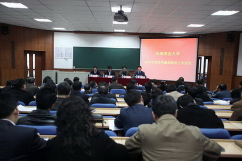 4月1日下午3 :00 ,在3 号教学楼110室召开了beat365官网2009年党风廉政建设工作会议。参会人员有:教卫工委领导、学校党政领导、校纪委委员、全体中层干部、校党风廉政建设监督员、各分党委、党总支、直属支部纪检委员,计财处、基建处、学生处招生办公室和就业指导中心、资产设备管理处、校医院、图书馆科级以上人员,会议由校长刘书瀚同志主持。教卫工委领导对此次会议高度关注和重视,教卫纪工委书记刘十洲同志出席会议并作重要讲话。