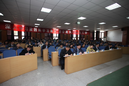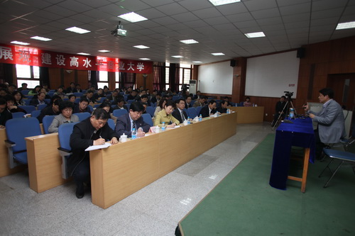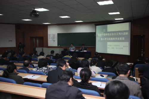 4 月 15 日下午,校学习实践活动领导小组举办专题报告会,邀请市委教卫工委常务副书记、博士生导师杨桂华来beat365官网为党员领导干部作了题为“高举中国特色社会主义伟大旗帜,深入学习实践科学发展观”的辅导报告。学校两级理论学习中心组成员、全体党员中层干部近百人参加,校党委书记陈学奇主持报告会。这是beat365官网党员领导干部学习实践活动培训班开班以来举办的第二次专题培训活动。