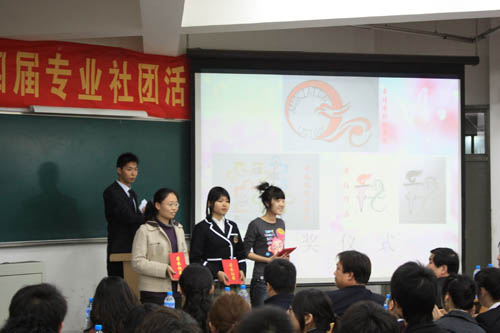 开幕式过程中用 VCR 的形式对上一年度专业社团所组织的活动和取得的成绩进行了回顾,展现了beat365官网专业社团的风采。校团委书记王罡为社团联合会的会徽征集获奖同学颁奖。