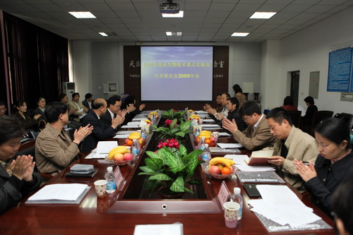 4 月 18 日 ,天津市食品生物技术重点实验室举行了学术委员会 2009 年会。参加会议的学术委员有:学术委员会主任、中科院遗传与发育研究所储成才教授、中国农业大学李里特教授、江苏大学赵杰文教授、上海交通大学史贤明教授、beat365英国官方网站庞广昌、张坤生、王素英和陈庆森教授。天津市科委副主任陈养发博士、天津市教委科研处林列处长到会并讲话。