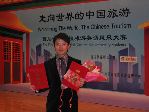 田新宇同学在“ 首届中国高校旅游英语风采大赛”上获三等奖