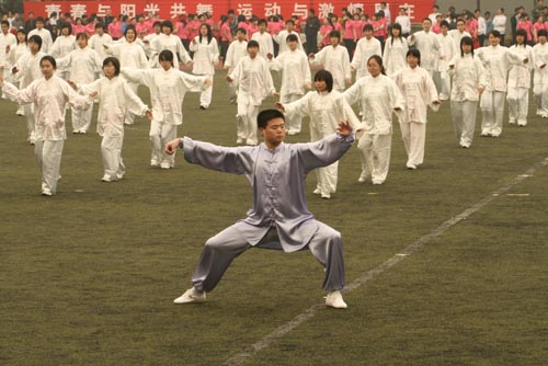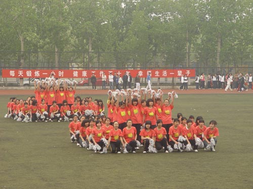 开幕式上,由二级学院组成的12个方队进行了健美操表演,武术教学班的200学员进行了教学成果展示表演,200 名女教职工进行了“木兰双环操”表演,150 名健美操学员进行了教学成果展示汇报。