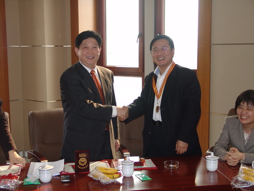 陈书记为申江教授颁发证书并佩戴奖章