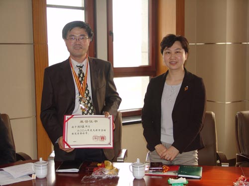 校党委史习红副书记为陈庆森教授颁发证书