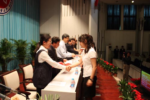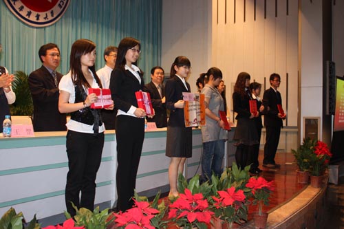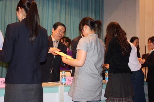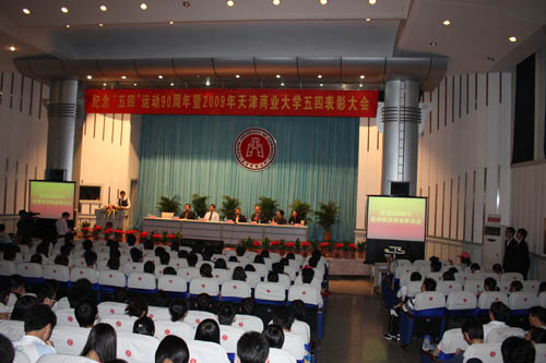 5月6日下午,纪念五四运动 90 周年暨 2009 年beat365英国官方网站五四表彰大会在学术交流中心召开,校党委副书记杨万义、校党委组织部部长李新锁、校党委宣传部部长史瑞杰、外国语学院党总支书记肖培荣、高职与继续教育学院党总支书记垢宝印、校团委书记王罡、学生处副处长张捷出席大会。