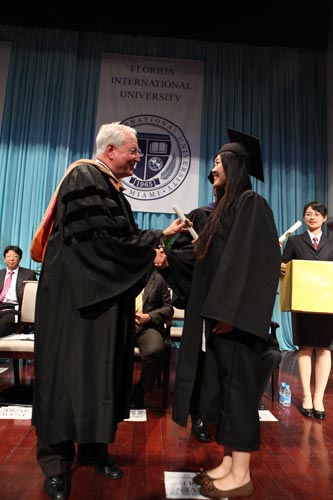 Modesto A. Maidique校长为毕业生授予学位证书
