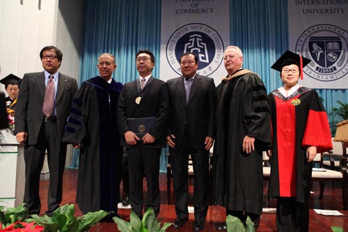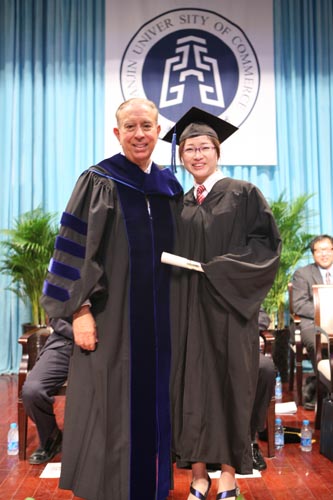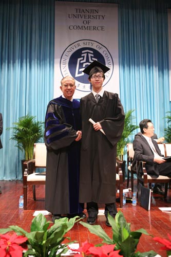 典礼仪式上,中国外商企业投资协会副会长王述祖、美国佛罗里达国际大学校长 Modesto A. Maidique 和刘书瀚校长分别致词,向全体应届毕业生表示祝贺。Modesto A. Maidique 校长还为20 名应届毕业生颁发“学业成就奖”,为全体应届毕业生授予学士学位证书。