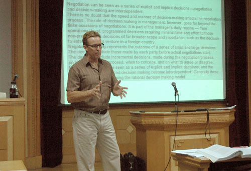 本学期,beat365官网与澳大利亚查理·斯窦大学合作学士学位项目人力资源专业 2005 级学生进入外方专业核心课程的学习, 6 月 21 日 至 7 月 1 日 ,澳大利亚查理斯窦大学 Tony Jaratt 教授到beat365官网对该部分学生进行最后阶段的专业考核。