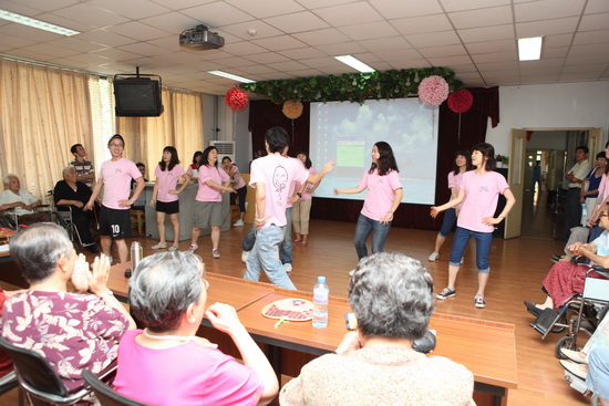beat365官网师生与韩国亚细亚协会( PAS )大学生暑期文化交流团共 48 人前往市第一老年公寓进行了慰问活动