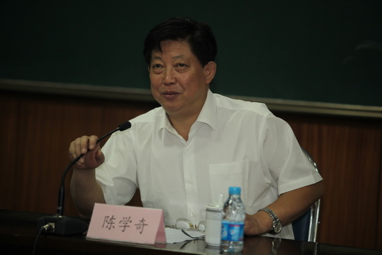 陈学奇在讲话中指出,在市委和教育工委的正确领导下,在市委和工委指导检查组的具体指导下,在全体党员和广大师生员工的积极参与和广泛支持下,校党委精心安排部署,领导班子率先垂范,各级党组织坚持边学边改,紧密结合实际,突出实践特色,较好地完成了学习实践活动三个阶段的任务,取得了一定的效果,达到了预期目标和要求。他指出,校党委在学习实践活动中,把握一条主线,体现三个着力点,推进四级联动,推动学习实践活动有序开展。把握一条主线就是,积极贯彻落实市委关于保增长、渡难关、上水平的一系列决策部署,围绕服务天津现代服务业,凝练学科方向;以社会需求为导向加强专业建设;主动适应社会需求,培养特色人才。体现三个着眼点就是,通过加速产学研一体化,整合力量加强决策参考性研究,加大文化辐射力度对外提高社会贡献度;通过培养特色人才,搭建师资建设平台,创新体制机制,构建和谐校园对内提高学校核心竞争力;通过加强校领导班子自身建设,加强干部队伍建设,切实改进工作作风自身加强思想作风建设。推进四级联动就是,学校整改落实工作中坚持与市委和市委教育工委的工作部署联动,与有关单位在促进经济社会发展上联动,与学院在共同推动解决主要问题上联动,职能部门之间在形成解决问题的合力上联动。