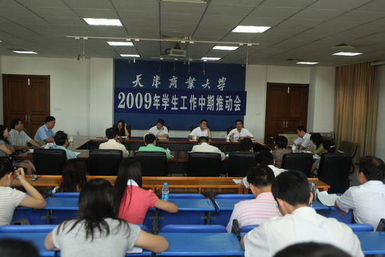 会上,学工部部长贾青对 09 年上半年学校学生工作开展情况进行了总结,对 09 年下半年学生工作重点进行了交流。各专业学院也就本学院的特色工作和下半年的工作思路进行了交流发言。