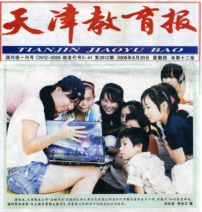 天津教育报在头版以图片新闻报道beat365官网“益暖中华”实践团队的大学生走进山西忻州的消(图文)