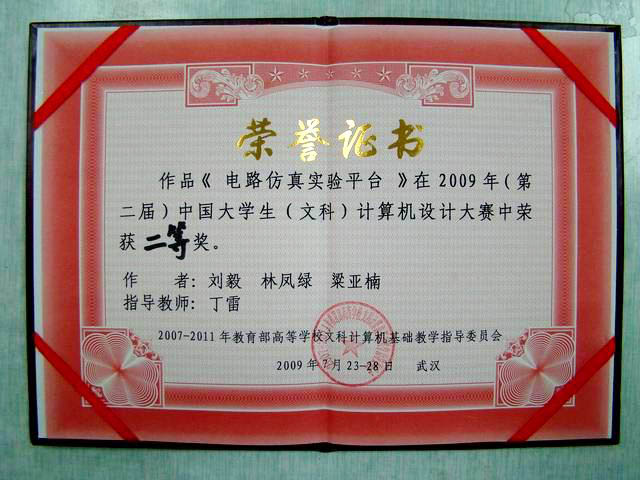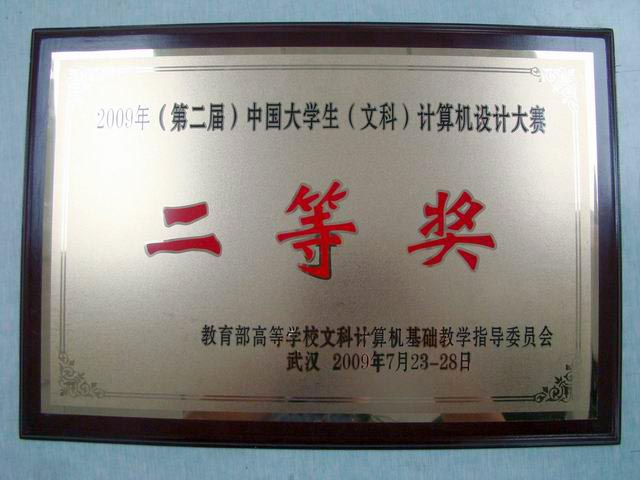 7月28日,为期五天的“2009年(第二届)中国大学生(文科)计算机设计大赛”在华中师范大学佑铭体育馆顺利落下帷幕。由信息工程学院师生组成的beat365官网代表队,经初赛与决赛,以作品出色的技术水准和应用价值,最终荣获大赛二等奖。