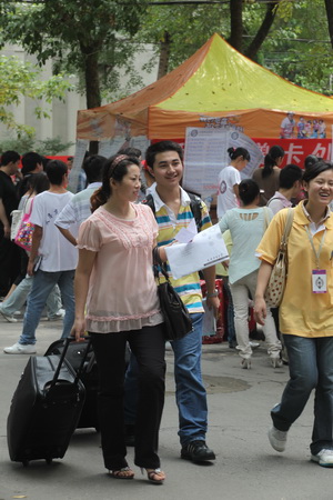 9 月 5 日 、 6 日,商大校园生机勃勃、热闹非凡, 3971 名来自祖国四面八方的新生陆续走入校园,在学校热情周到的服务中开始了全新的大学生活。学校教务处、保卫处、总务处、财务处、图书馆、饮食集团、后勤集团等部门精心准备、通力合作,各专业学院周密安排、全力以赴,为 2009 级新生报到顺利进行做了大量卓有成效的工作,赢得了新生的家长的一致好评。各专业学院分别召开家长座谈会,并为 2009 级新生制定了详细的入学教育方案。