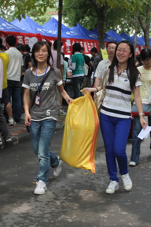 校园里到处可见为新生们服务的志愿者