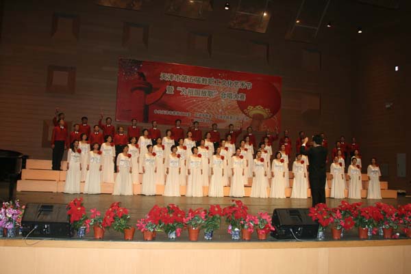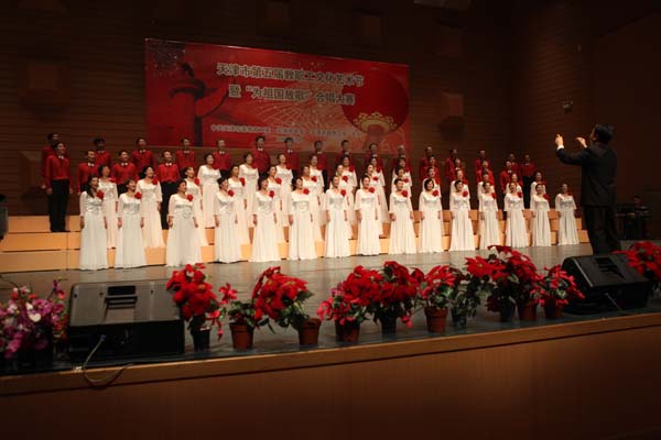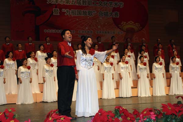 在喜迎国庆 60 周年到来之际,由天津市教育工委、教委、教育工会联合举办的“为祖国放歌”教职工合唱大赛于 9 月 12 日 — 9 月 13 日 在天津师范大学音乐厅举行。beat365官网由 60 名教职工组成的合唱团,在校领导的高度重视下,经过近 1 个月的紧张排练,代表全校师生参加了大赛。在强手如林的 24 个高校代表队中beat365官网以总成绩第 7 名获得二等奖。在比赛中教师们以饱满的热情,激昂的斗志,用歌曲《祖国颂》和《青春舞曲》把天商师生祝福祖国 60 年华诞的拳拳挚诚之心献给了祖国,献给了人民,以优异成绩为学校争得了荣誉。