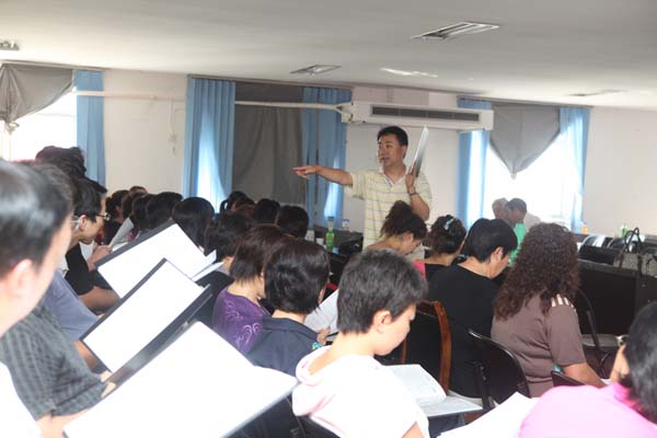 为圆满完成参赛任务,教工合唱团的教师们在开学繁忙的工作中,为了不影响工作,坚持每天下班后排练。教师节这天,校党委副书记、工会主席史习红,在校工会副主席宋树发陪同下亲自来到科学会堂看望正在紧张排练的全体合唱团教师,并转达了校党委书记陈学奇、校长刘书瀚对大家的问候和感谢。同时为充分做好赛前的准备工作,史书记审查了节目并作了战前动员。