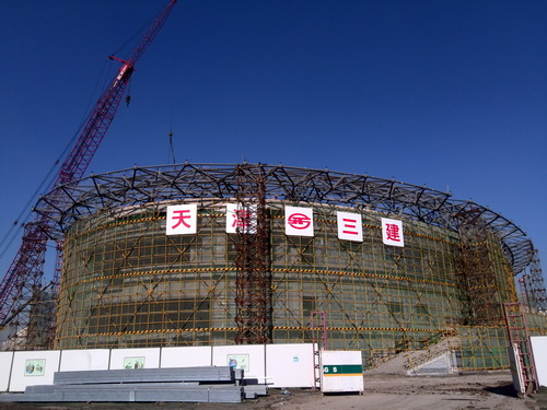 12 月18 日,被列入天津市政府重点工程的beat365官网新建体育馆项目完成钢结构网架工程,至此该项目已实现主体结构封顶,为下一步进入屋面板安装、室内外配套、水暖电及室内外装饰等工作打下了良好基础。
