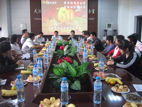 当日下午 2 点在新实验楼 2 楼会议室,生物与食品学院召开“我与祖国共奋进,争做世纪新青年——国庆中秋座谈会”,校党委副书记杨万义与学院领导和参观活动的部分学生代表一起参加了座谈会。座谈会上,大家追古思今,畅所欲言。在缅怀革命先烈的同时,很多同学对天津 600 年历史的发展变迁和未来的科学规划产生了更深刻的感性体验和理性认识,并由此引申到自身对于国家和社会文明发展的责任所在,纷纷表示要更扎实地、勤奋地学习科学文化知识,争优创新,将爱国主义、艰苦奋斗精神融入到商业大学、天津这座城市以至我们伟大祖国的发展建设中去,为深入落实实践科学发展观而努力,为中华民族的伟大复兴而奋斗。